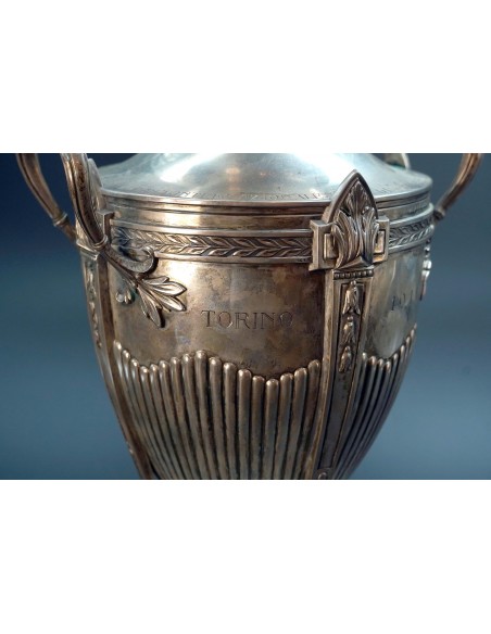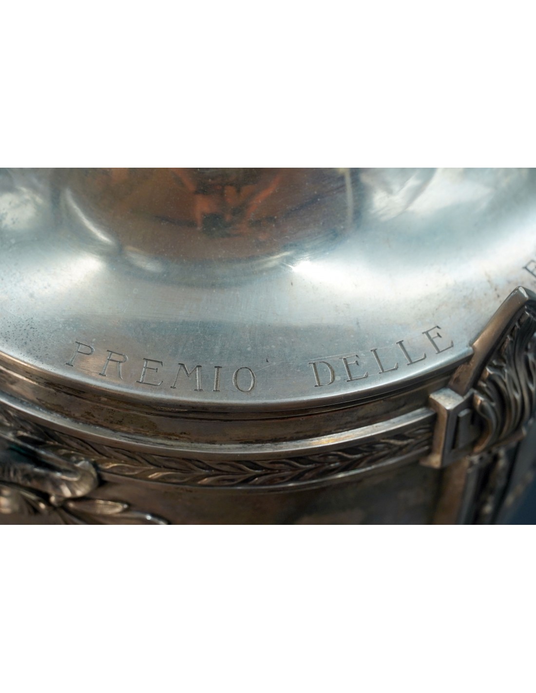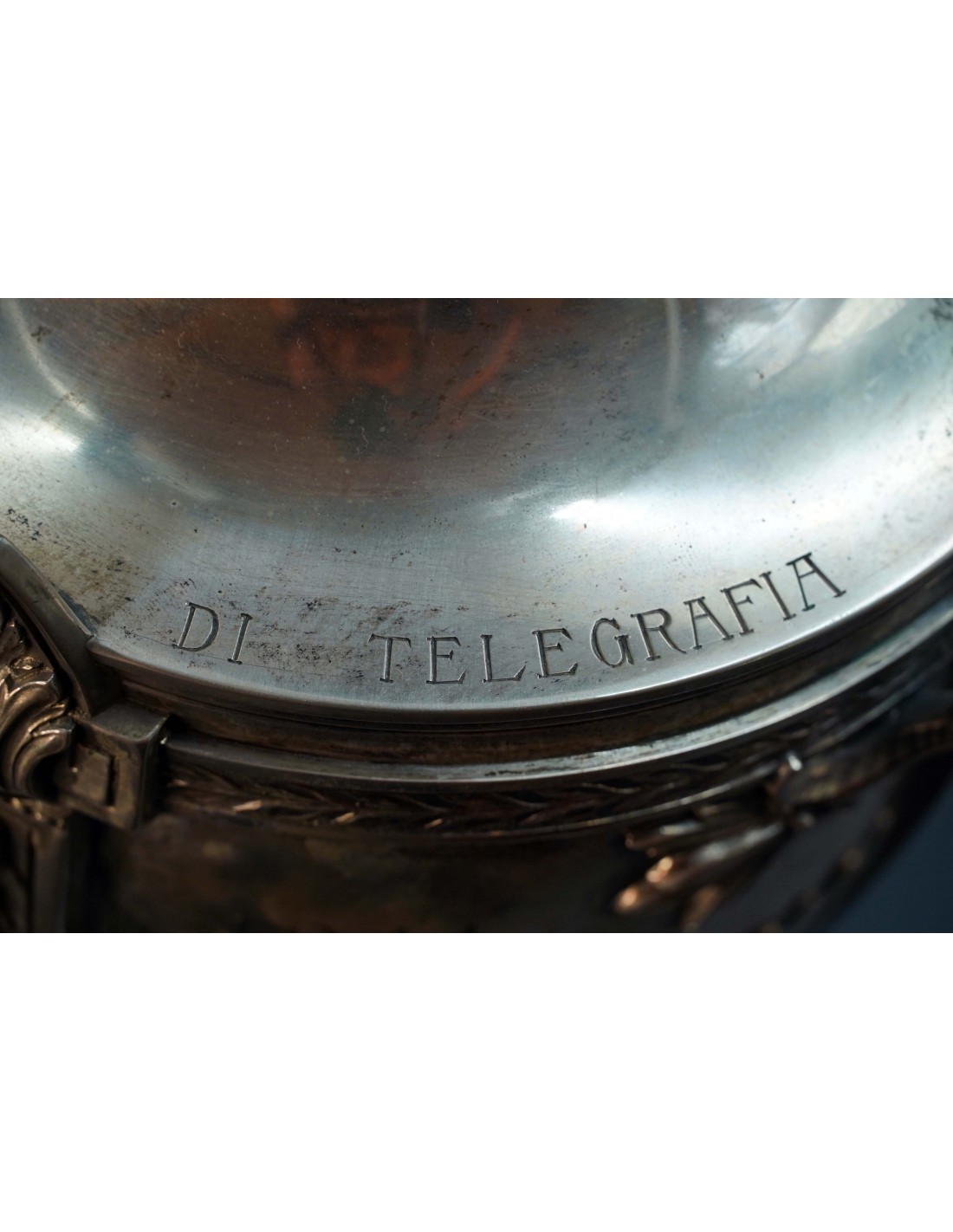Argint marcat BREMER SILBERWARENFABRIK, inscripție gravată manual ”PREMIO DELLE FERROVIE DELLO STATO GARA INTERNAZIONALE DI TELEGRAFIA TORINO 1911”