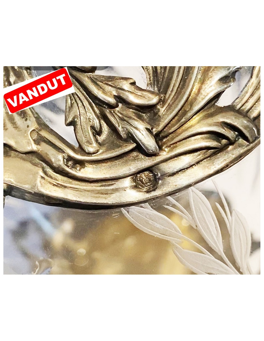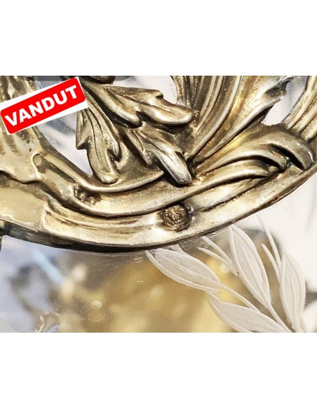 Cristal gravat, șlefuit, montat în argint.