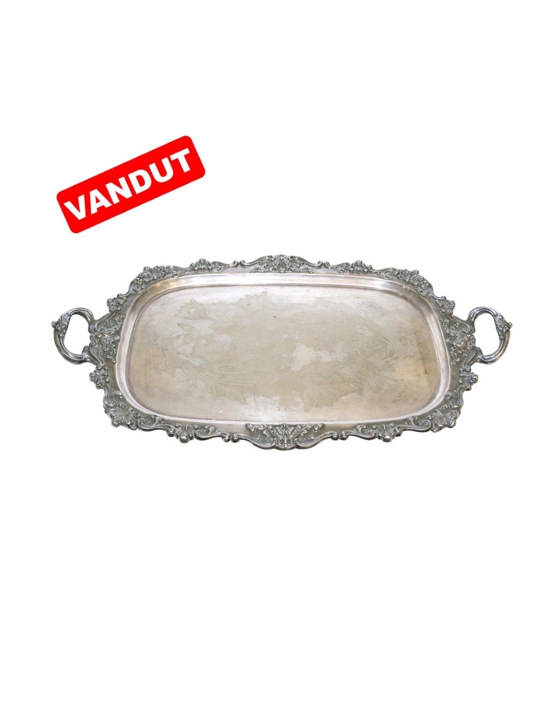 Metal argintat, decorat în relief (bordură), gravat, elemente Napoleon III.