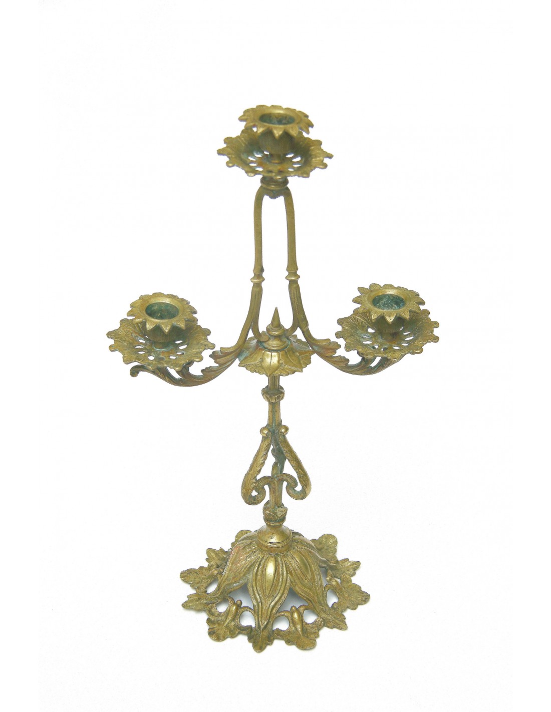 SFEŞNIC DIN BRONZ CU TREI LUMINI, BOGAT DECORAT