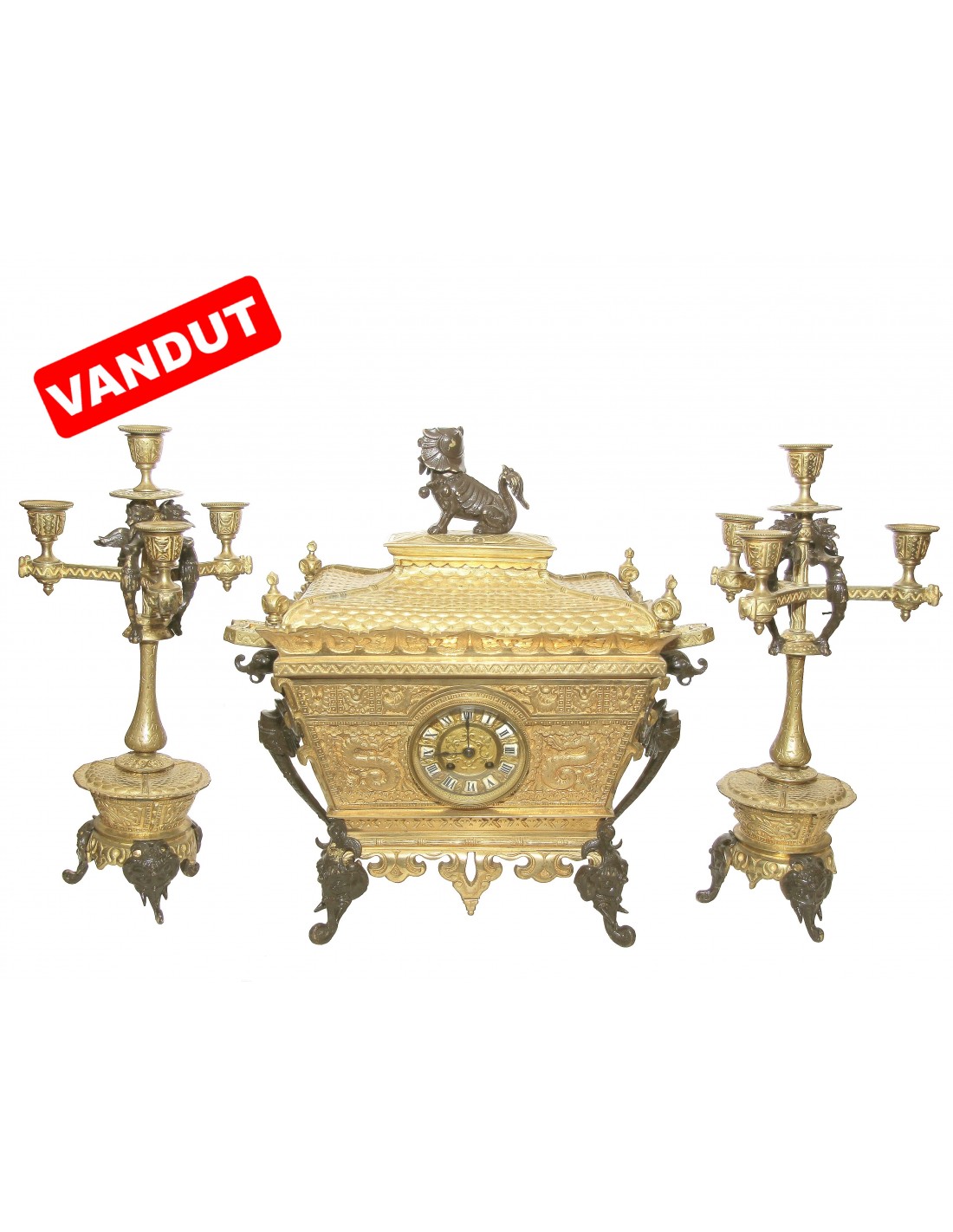 Bronz aurit și bronz patinat.