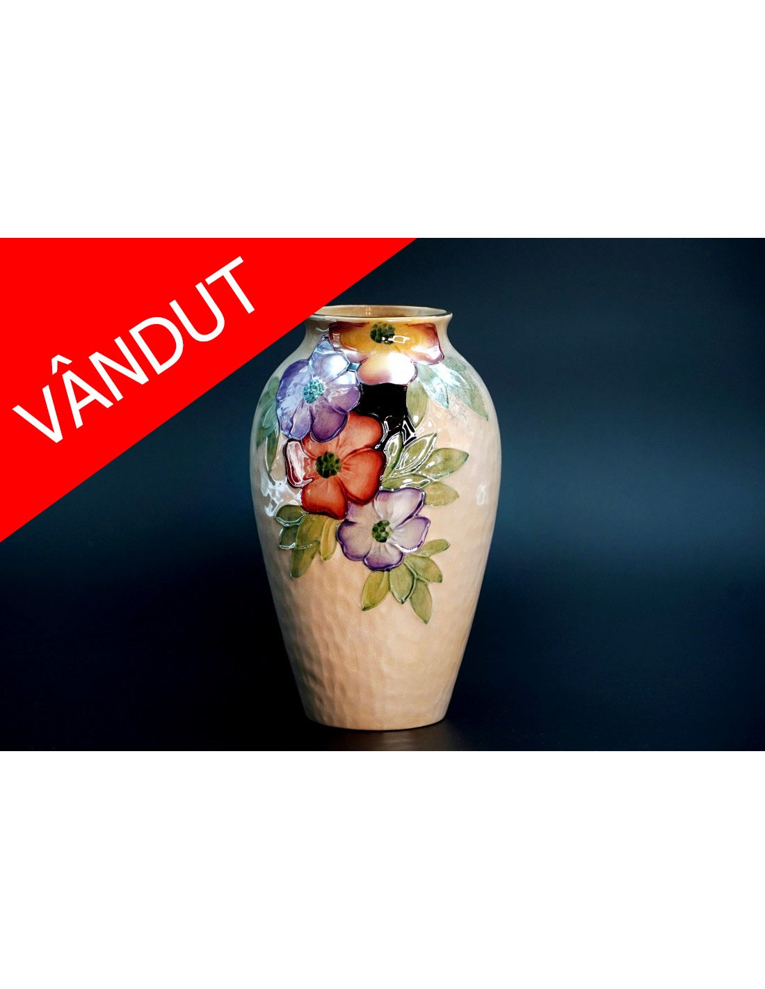 Ceramică decorată în relief cu flori, pictată policrom cu email, glazurată, marcată MALING EN TYNE.
